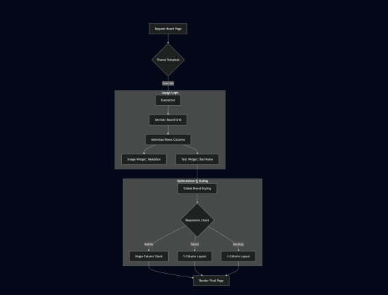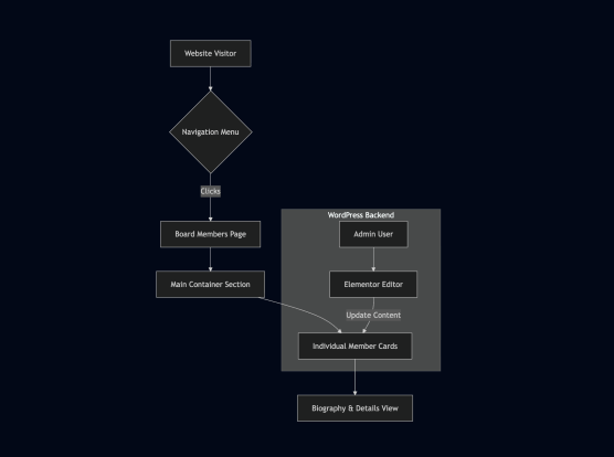 WordPress page editor and Elementor widgets were leveraged to allow non-technical users to update board member information easily.