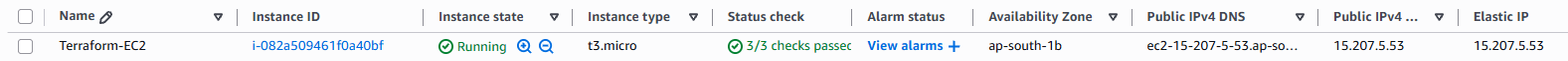 | resource “aws_security_group” “ec2_sg” { name = “terraform-sg” ingress { from_port = 22 to_port = 22 protocol = “tcp” cidr_blocks = [“0.0.0.0/0”] } ingress { from_port = 80 to_port = 80 protocol = “tcp” cidr_blocks = [“0.0.0.0/0”] } egress { from_port = 0 to_port = 0 protocol = “-1” cidr_blocks = [“0.0.0.0/0”] } } resource “aws_instance” “ec2” { ami = var.ami_id instance_type = var.instance_type key_name = var.key_name vpc_security_group_ids = [aws_security_group.ec2_sg.id] tags = { Name = “Terraform-EC2” } } resource “aws_eip” “eip” { instance = aws_instance.ec2.id } |