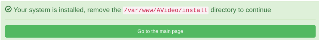 - Now we need to remove the /var/www/AVideo/install/ directory.