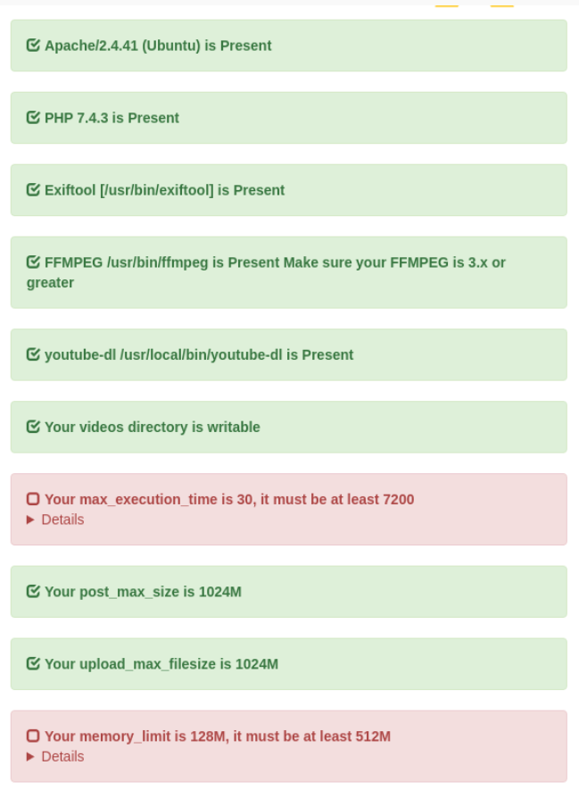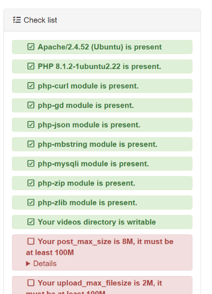 - The left hand side will show you if your server meet the requirements of AVideo Encoder.