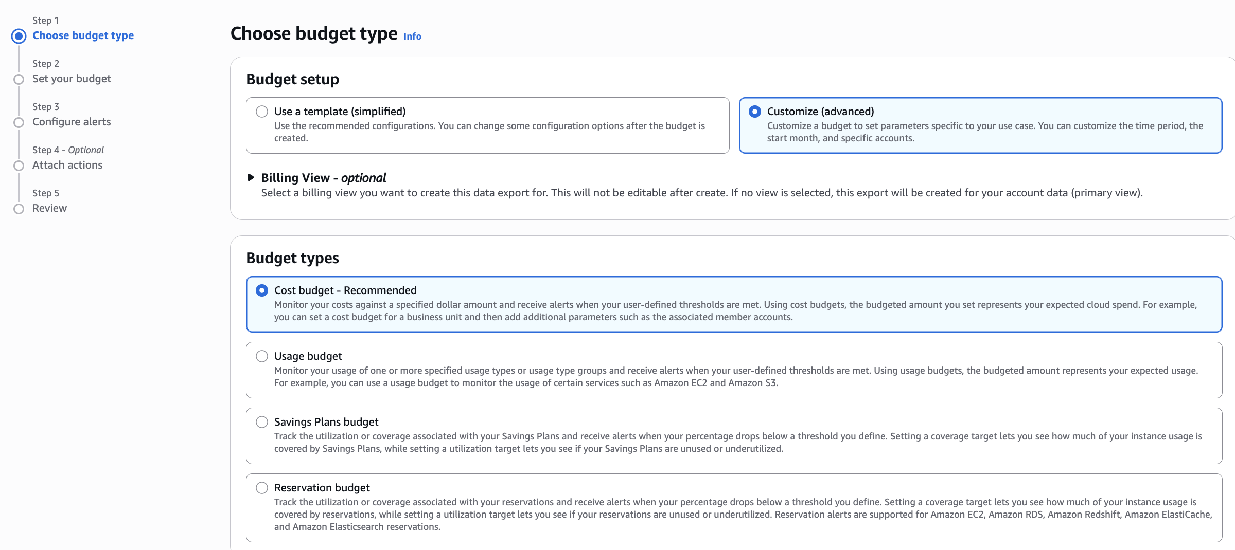 Review all settings and click Create budget