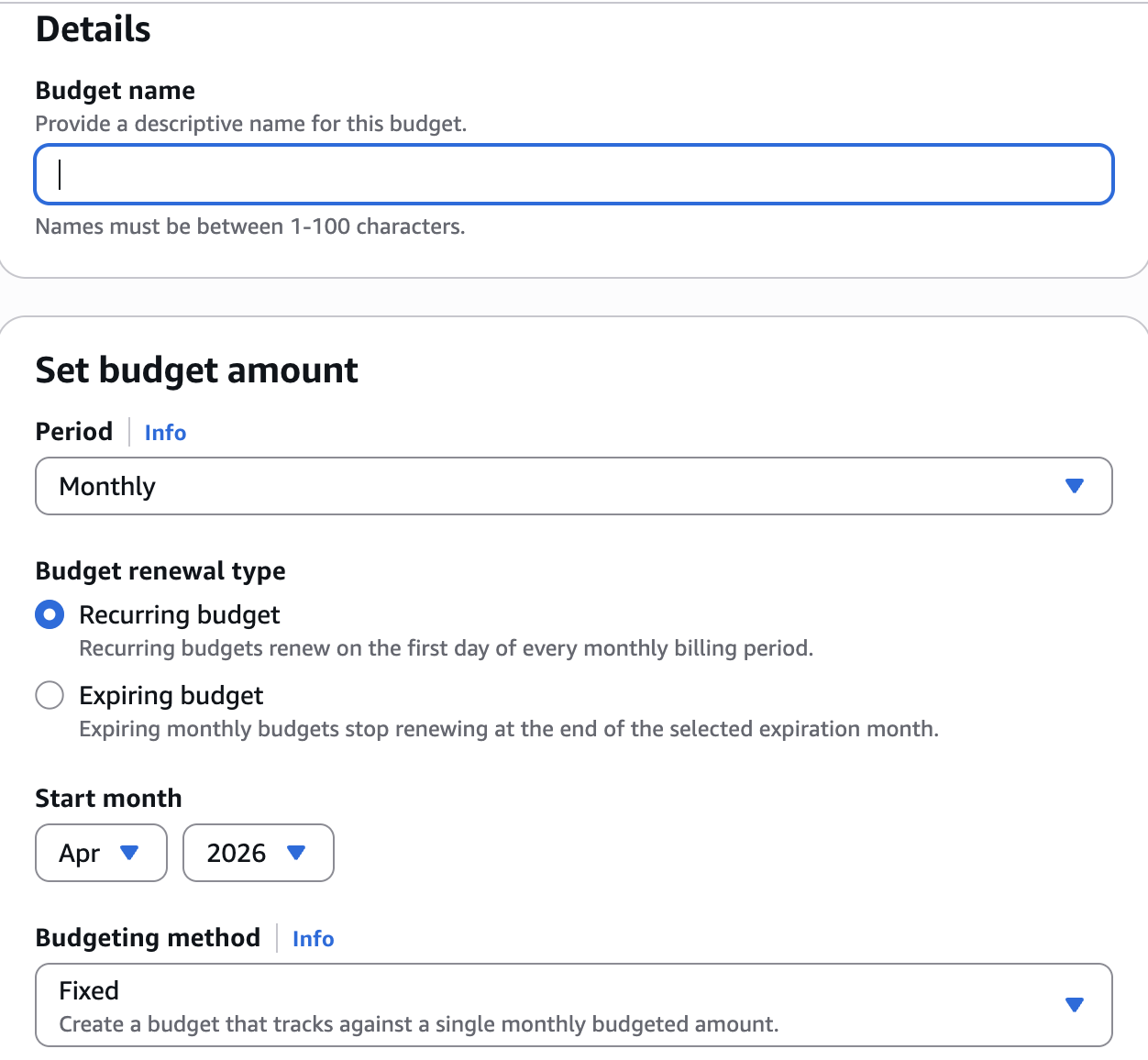 - Set Budget period (Monthly recommended)