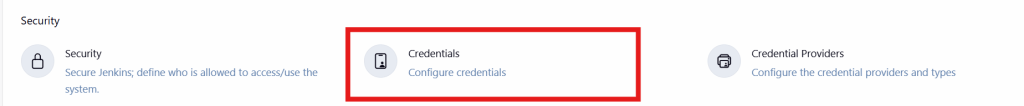 Once logged in, navigate to “Manage Jenkins” → “Credentials”.