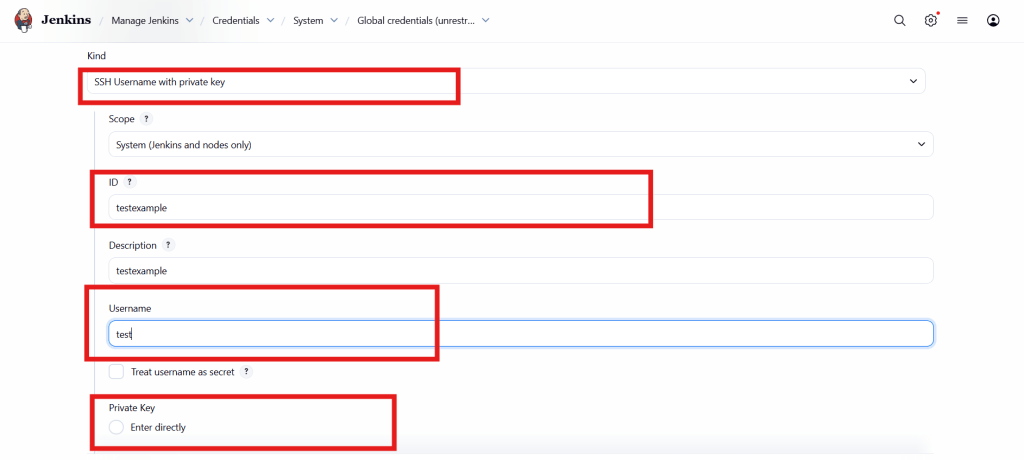 2. The type (SSH Username with Private Key, Username and Password, etc.).