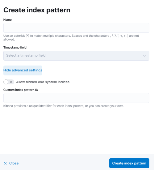 - Click Create index pattern